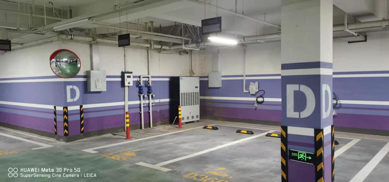 目前東華府地下車庫 存在車庫頂部凝露,地面有水現象,客戶經過多方對比后,與眾有銷售人員取得聯系,并說明具體要求與現有條件,眾有為其地下車庫配備25臺除濕機,可以滿足車庫潮濕,積水的要求,目前所有除濕機已經安裝到位,交付客戶使用。