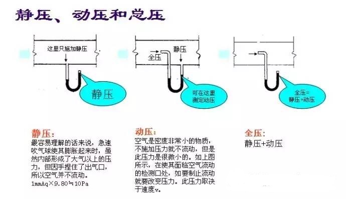 動壓與靜壓之和叫全壓。因此,全壓是流體的宏觀流動與分子熱運動的綜合反映